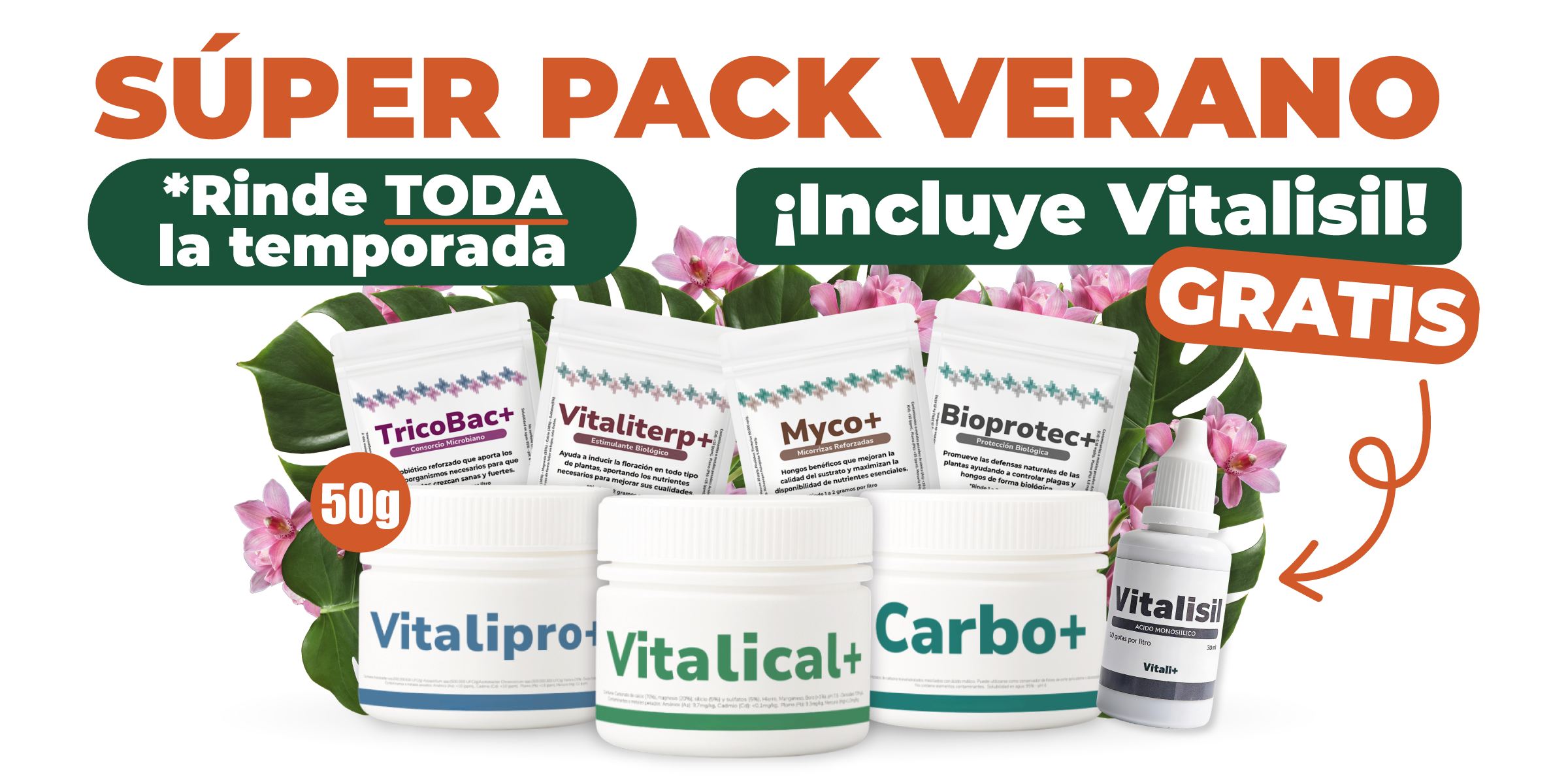 El sol no perdona. Evita el "desmayo" y la deshidratación con este tridente científico que retiene el agua en las hojas (Vitalical), inyecta energía pura para resistir el estrés térmico (Carbo) y maximiza la absorción reparando las raíces (Vitalipro). Solo por HOY: Lleva GRATIS un Bioprotec (en formatos 30, 50 y 250g) para blindarlas también contra las plagas de temporada. Mantén tu jungla creciendo, hidratada y protegida, sin importar cuánto suba el termómetro. ☀️